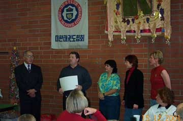![]() Grandmaster Kim and Master Steinhauser presented certificates to Ms. Fallaha, Ms. Tallen, and Mrs. Encalada. |