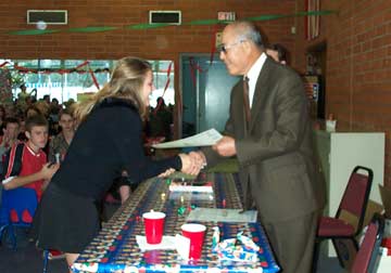 ![]() Grandmaster Kim congratulates Ms. Diane Fallaha. |