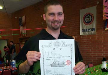 ![]() Mr. Boren displays his 3rd dan certificate. |