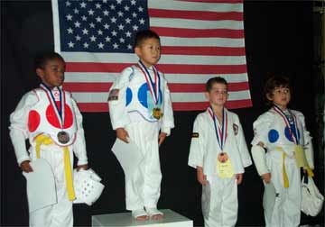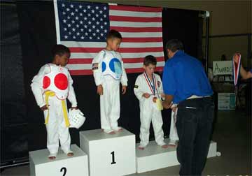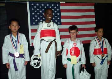 ![]() Grinning Dylan V. (3rd from left) awaits his bronze medal. |